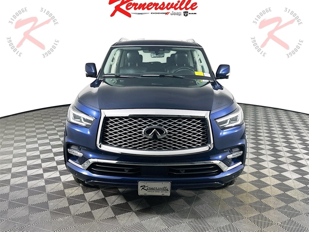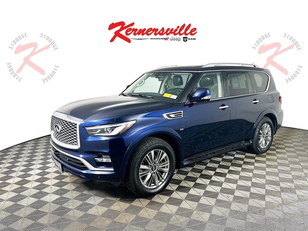 This 2020 INFINITI QX80 LUXE 4WD delivers commanding performance, luxury comfort, and advanced technology with its powerful 5.6L V8 engine paired to a smooth 7 speed automatic transmission and intelligent four wheel drive capability. Designed for confident driving, it features adaptive cruise control, blind spot intervention, lane departure warning, forward collision warning with emergency braking, and front and rear parking sensors along with a rear backup camera for added safety. The refined interior offers leather appointed seating, heated and ventilated front seats, a heated steering wheel, power adjustable front seats with memory, tri zone automatic climate control, and spacious third row seating for passengers and cargo alike. Additional conveniences include a power moonroof, power liftgate, remote start system, premium audio system, and a driver focused cockpit designed for comfort on long drives. With its bold styling, upscale features, and proven INFINITI performance, this QX80 LUXE is an excellent choice for families and drivers seeking full size SUV capability with premium refinement.