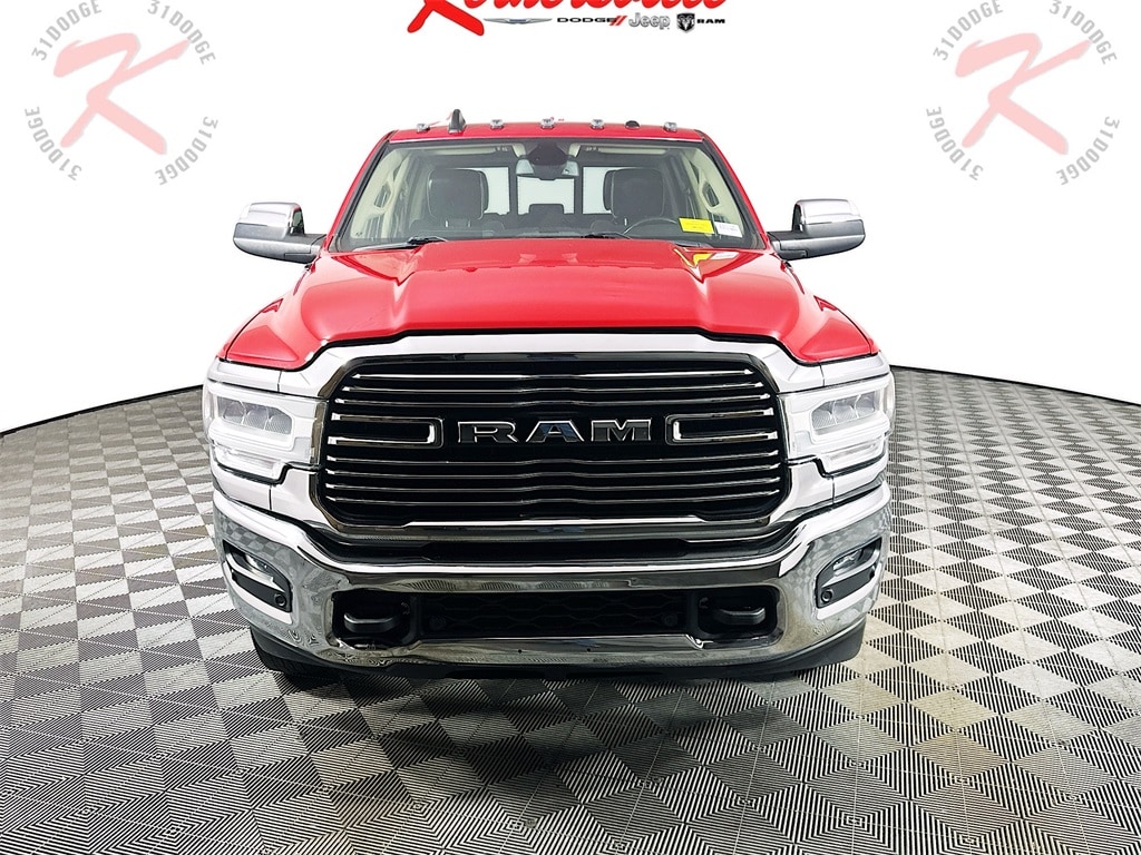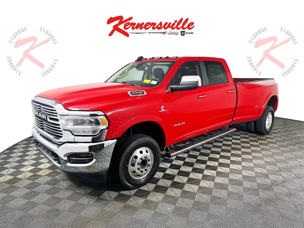 This 2022 RAM 3500 LARAMIE 4WD Crew cab truck with dual rear wheels and a long bed has a Cummins 6.7L I6 Turbodiesel engine, automatic transmission, leather seats, navigation system, rear-view camera, side steps, push start, remote start, heated steering wheel, heated seats, ventilated seats, front power seats, steering wheel controls, auxiliary input, USB port, Bluetooth, bedliner, ball in bed, trailer brake controller, cruise control, keyless entry, and 139,153 miles. It is also equipped with 235/80R17 Tires, Memory seats, Uconnect 5 Navigation with 12.0Inch Display, 50Gallon Fuel Tank, Automatic HighBeam HeadlampControl, 2ndRow InFloor Storage Bins, RainSensitive Windshield Wipers, A/C with /DualZone Auto Temperature Control, 9 Alpine Speakers with Subwoofer, Trailer Light Check, Sentry Key Theft Deterrent System, and HillStart Assist.