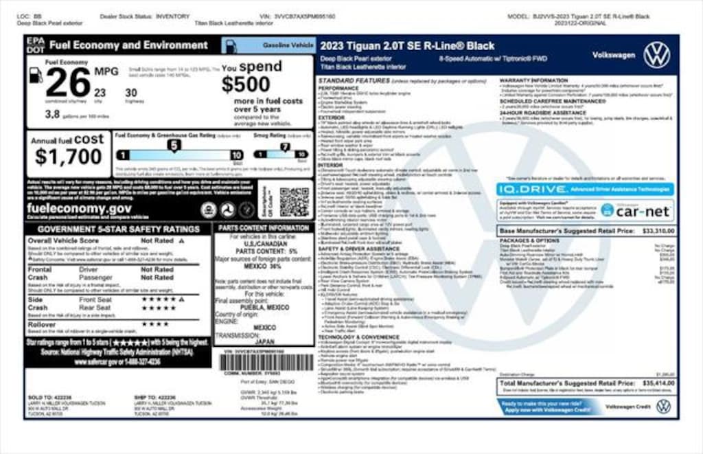 Feature-packed and decked out! Turbocharger technology provides forced air induction, enhancing performance while preserving fuel economy. With fewer than 25,000 miles on the odometer, this 4 door sport utility vehicle prioritizes comfort, safety and convenience. Volkswagen prioritized fit and finish as evidenced by: a leather steering wheel, a power rear cargo door, and the power moon roof opens up the cabin to the natural environment. It features a front-wheel-drive platform, an automatic transmission, and a 2 liter 4 cylinder engine.