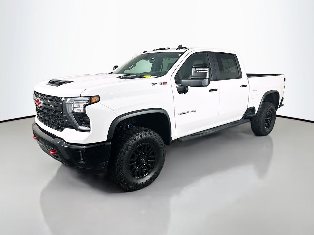 This 2024 Chevrolet Silverado 2500HD ZR2 Crew Cab 4X4 delivers extreme diesel performance, off road capability, and advanced technology, making it an excellent choice for drivers who need a heavy duty truck with premium features. Powered by a 6.6L Duramax turbo diesel engine paired with an Allison 10 speed automatic transmission and four wheel drive, this Silverado provides exceptional towing power and smooth performance for demanding jobs. Built for capability, it features the ZR2 off road package with advanced suspension, Autotrac transfer case, trailer brake controller, hitch guidance, and gooseneck fifth wheel prep package for serious hauling. Safety and driver assistance features include forward collision alert, automatic emergency braking, lane departure warning, following distance indicator, and advanced driver assistance systems for enhanced confidence. Inside, the cabin offers a refined and functional layout with heated front seats, dual zone climate control, power adjustable seats with memory, a heated steering wheel, and spacious rear seating with storage. Technology highlights include the Chevrolet Infotainment 3 Premium system with a 13.4 inch touchscreen display, Google built in compatibility, Apple CarPlay, Android Auto, Bluetooth connectivity, head up display, and a premium audio experience. Exterior features include LED lighting, off road high clearance steps, power sunroof, heated trailering mirrors, rear wheelhouse liners, and bold Silverado ZR2 styling. This Chevrolet Silverado 2500HD ZR2 combines power, technology, and rugged capability, making it a top tier truck for work or adventure.