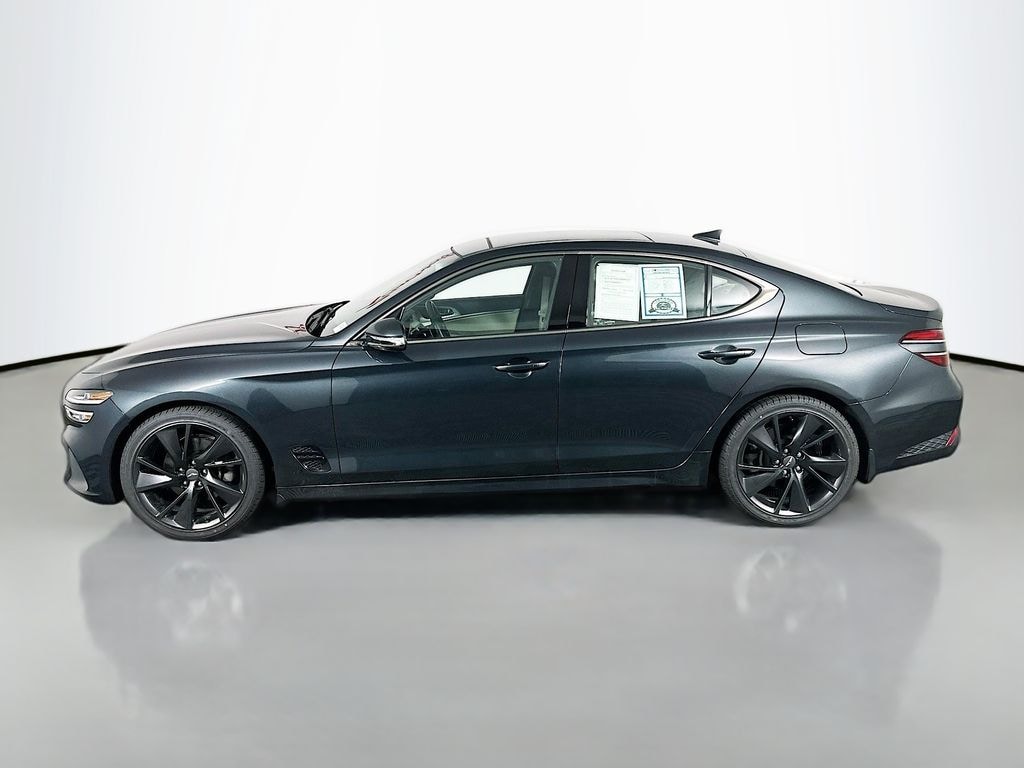 This Genesis G70 Sport Prestige delivers a refined balance of performance, technology, and luxury with a turbocharged 2.0L engine paired to an 8 speed automatic transmission and rear wheel drive for confident handling. Advanced safety systems include forward collision avoidance assist, lane keeping and lane following assist, blind spot collision avoidance, rear cross traffic alert, highway driving assist, smart cruise control with stop and go, driver attention warning, and a rearview camera with dynamic guidelines. The interior is equipped with leather seating surfaces, power front seats with lumbar support, heated and ventilated front seats, a wide sunroof, digital instrument cluster, navigation touchscreen, Apple CarPlay and Android Auto, Lexicon premium audio, wireless charging, and intuitive driver controls. Exterior highlights include hands free smart trunk access, heated power folding mirrors with LED turn signals, and rain sensing wipers, making this G70 a well equipped and performance focused luxury sedan.