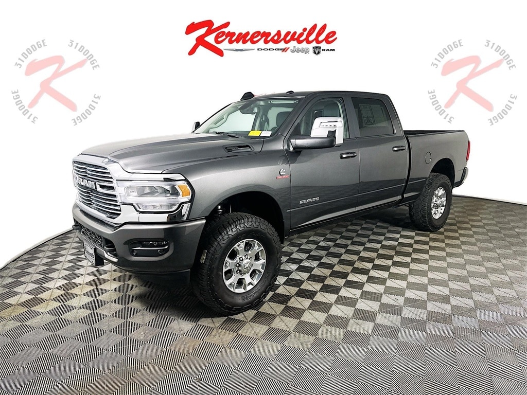 This 2024 Ram 2500 Laramie Crew Cab 4X4 is built for serious capability and premium comfort, powered by the legendary 6.7L I6 Cummins Turbo Diesel engine paired with a 6-speed automatic 68RFE transmission and a 3.73 axle ratio for confident towing and hauling performance. Equipped with an electronic shift-on-the-fly transfer case, trailer brake controller, trailer sway damping, tow hooks, and a 220-amp alternator, this heavy-duty truck is ready for demanding jobs. Safety and control features include electronic stability control, traction control, advanced multistage front airbags, supplemental side-curtain airbags, Blind-Spot Monitoring with trailer detection, ParkView rear back-up camera, and ParkSense front and rear park-assist system. Inside, enjoy premium comfort with leather-trimmed 40/20/40 bench seating, heated and ventilated front seats, a heated steering wheel, dual-zone automatic climate control, power adjustable pedals with memory, and a rear power-sliding window. Technology highlights include the Uconnect 5 navigation system with a 12-inch touchscreen display, Apple CarPlay, Android Auto, integrated voice command, and a 9-speaker Alpine audio system with subwoofer. Finished with 18-inch polished aluminum wheels, LED reflector headlamps, rain-sensitive windshield wipers, and distinctive Laramie styling, this Ram 2500 delivers the perfect balance of strength, technology, and refinement.