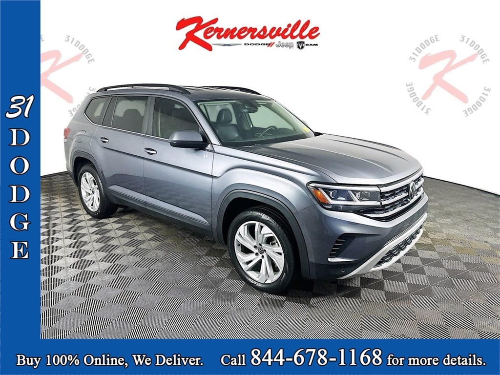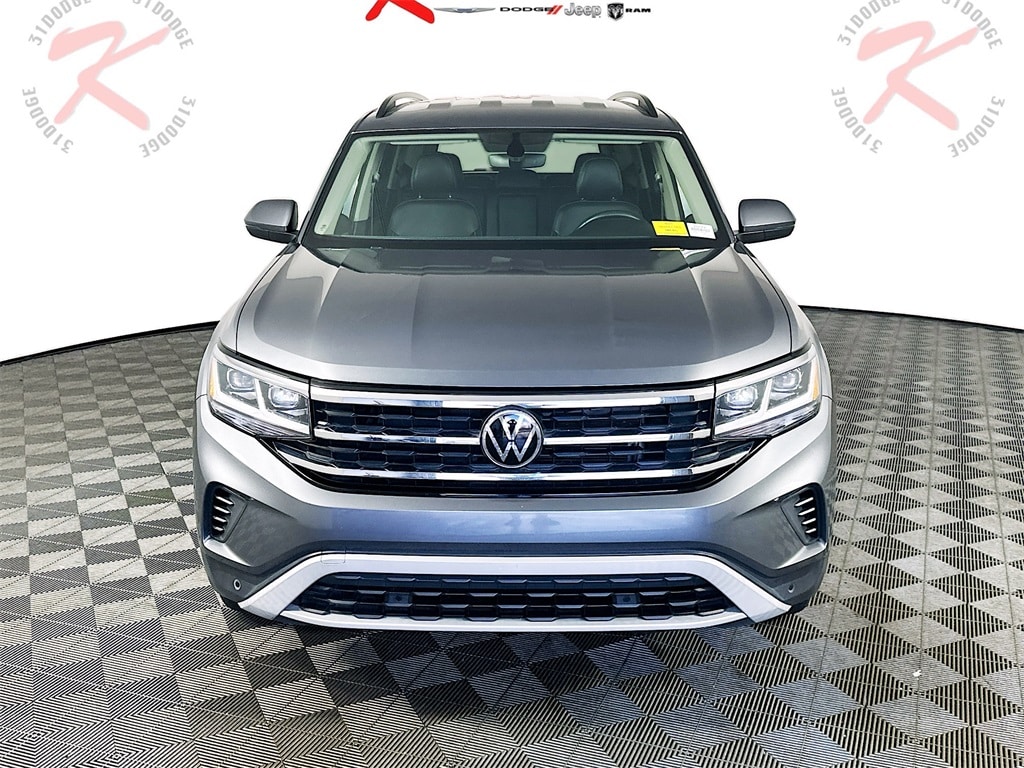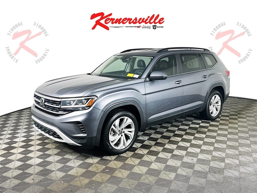 This 2021 Volkswagen Atlas 3.6L V6 SE with Technology and 4MOTION all wheel drive delivers spacious three row versatility, confident V6 performance, and advanced driver assistance technology in a refined midsize SUV designed for families and everyday travel. Powered by the strong 3.6L VR6 engine paired with a smooth shifting 8 speed automatic transmission with Tiptronic manual shift capability, this Atlas provides responsive acceleration and dependable all wheel drive traction for changing road and weather conditions. Inside the cabin, passengers are surrounded by comfort and practicality with heated front bucket seats, durable perforated V Tex leatherette seating surfaces, multiple storage compartments, and generous seating space across three rows. Technology features include an intuitive infotainment system with an 8 inch touchscreen display, smartphone connectivity, and a driver information display designed to keep essential information easily visible. Safety and driver assistance systems include forward collision warning with autonomous emergency braking, blind spot monitoring, rear traffic alert, park distance control with front and rear sensors, and a rear backup camera designed to enhance visibility and driver confidence. Exterior styling adds modern design with LED headlamps, alloy wheels, roof rails, fog lamps, chrome accents, and a convenient power liftgate that makes cargo access easier. Combining powerful V6 performance, advanced safety technology, and spacious interior versatility, this Volkswagen Atlas SE with Technology offers a comfortable and capable SUV built for daily driving, long road trips, and family adventures.
